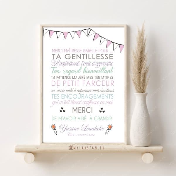 Affiche Remerciement Maître/Maîtresse ou Atsem floral