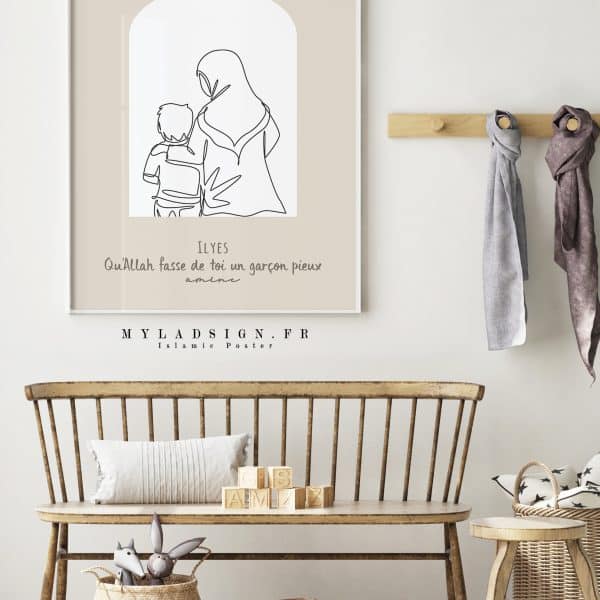 Line Art mère fils beige ou vert