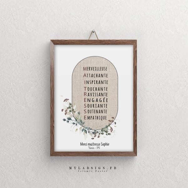 Jolie affiche maitresse/atsem. Une idée de cadeau qui apporte beaucoup d’émotion. c’est l’idée cadeau abordable et original.