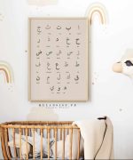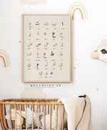 Joli poster alphabet arabe sur le thème boho aux couleurs chaude Vert ou terracota au choix avec la phonétique. Idéal pour décorer et l’apprentissage de l’enfant.