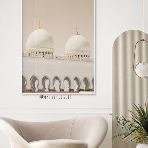 Ce jolie duo de posters aux tonalités beige nude comprenant une magnifique photographie des dôme de la mosquée Cheikh Zayed aux couleurs beige et la calligraphie Sabr sur un magnifique fond de sable de plage et d’écume de mer. ce duo vous est proposé en format paysage (horizontal) ou portrait (vertical)