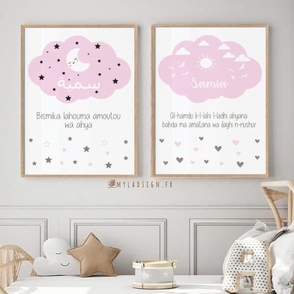 Ce magnifique trio aux couleurs mixtes et chaleureuses conviendra autant à baby girl que baby boy. comprenant la du’aa de protection , une affiche naissance et le verset Ayat Kursi à apprendre pour protéger votre enfant et le lui apprendre. Idéal pour offrir ou habiller la jolie chambre de baby.